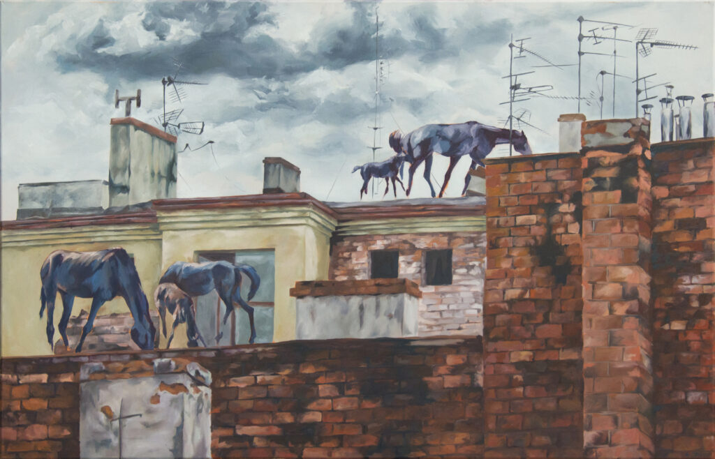 Her paintings and drawings focus on animalistic themes. This subject is very close to her heart, as she spent time with these animals in her childhood, observing them, learning about their behaviour and loving them. Aleksandra says: I am fascinated by their form, expression and mannerisms. The sincerity of their behaviour, which we humans lack.